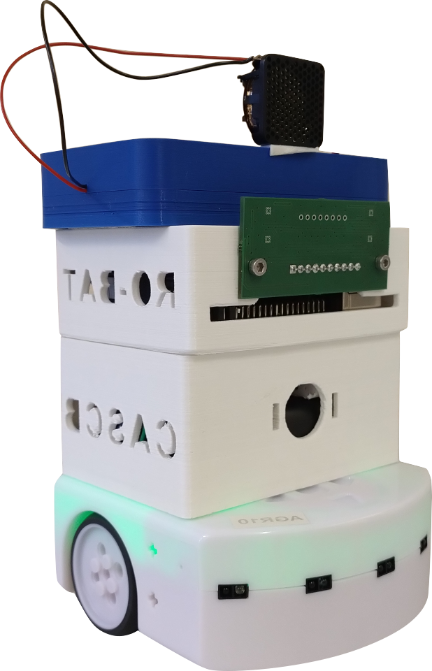 We developed the SonoRo swarm-robotics platform (See Publications). Each SonoRo is equipped with a speaker that emits a beacon-signal, and a microphone array that allows direction-of-arrival calculation. The SonoRo is a cool system to study passive acoustic swarms. Another platform we have been developing is the active-sensing, echolocating 'RoBAT' platform. This platform is of course much more directly linked to our core interests of emulating and studying the mechanisms that allow lots of echolocators to show collective behaviour.